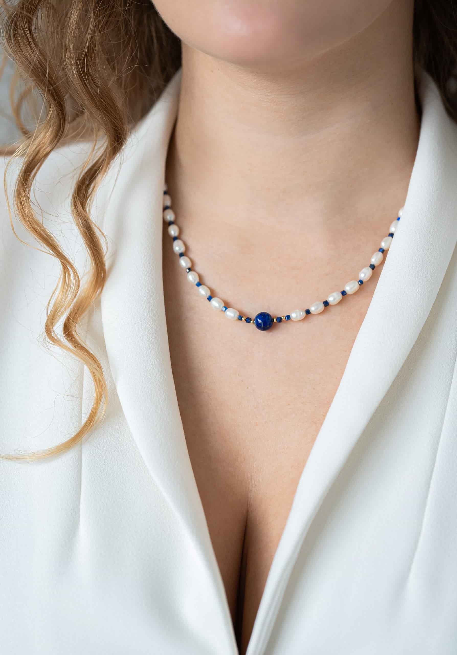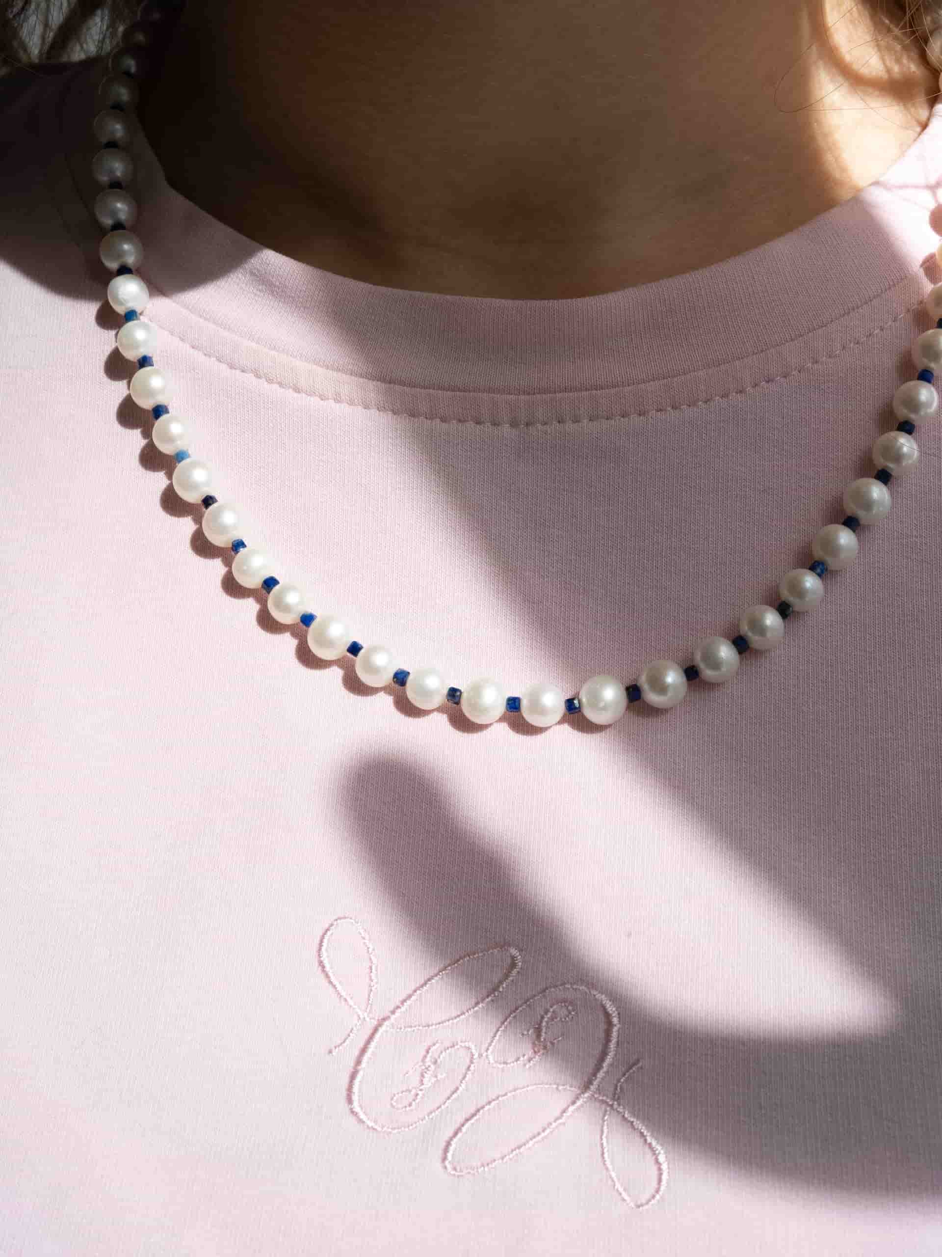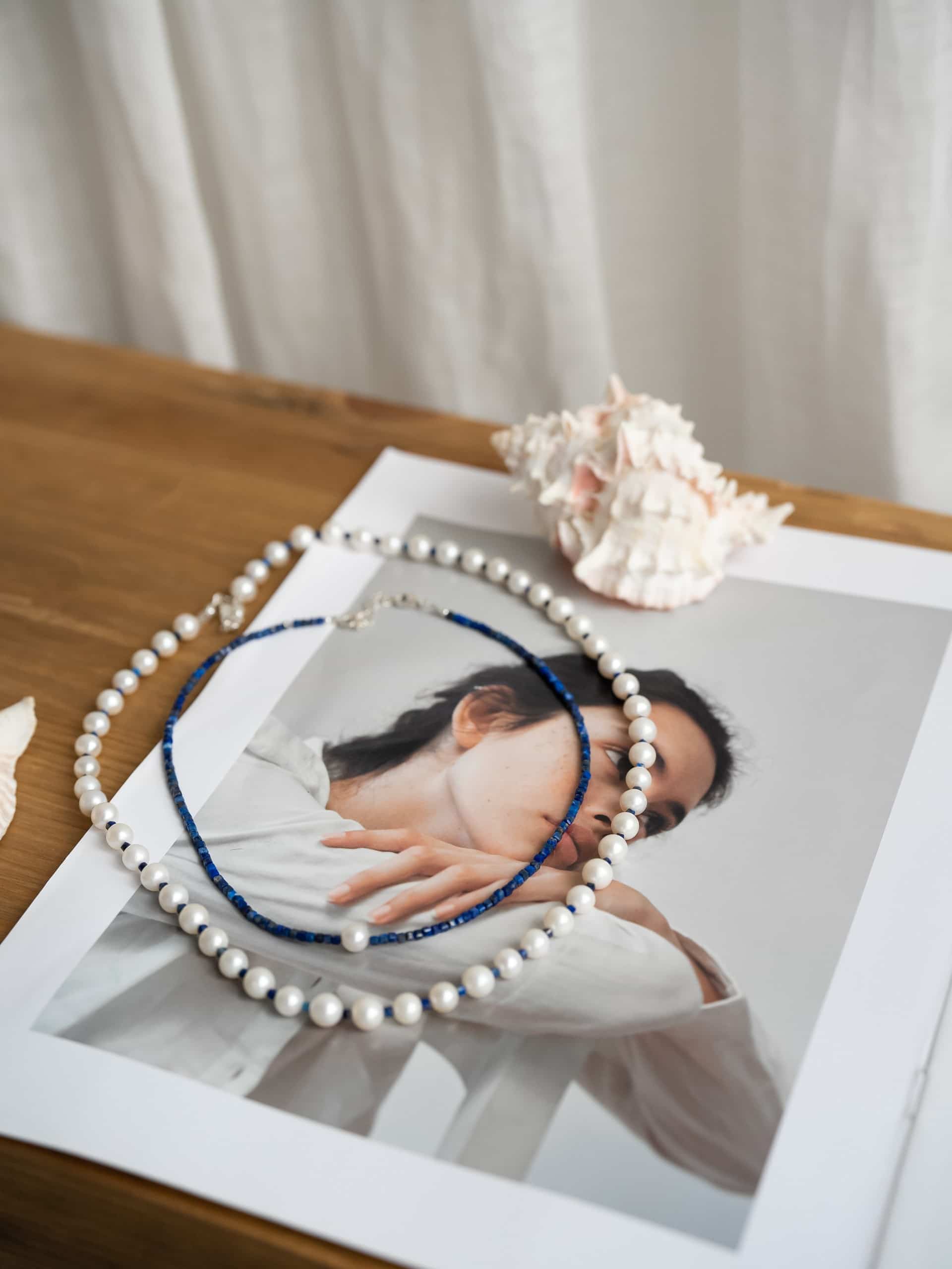 Колье из жемчуга с лазуритом
