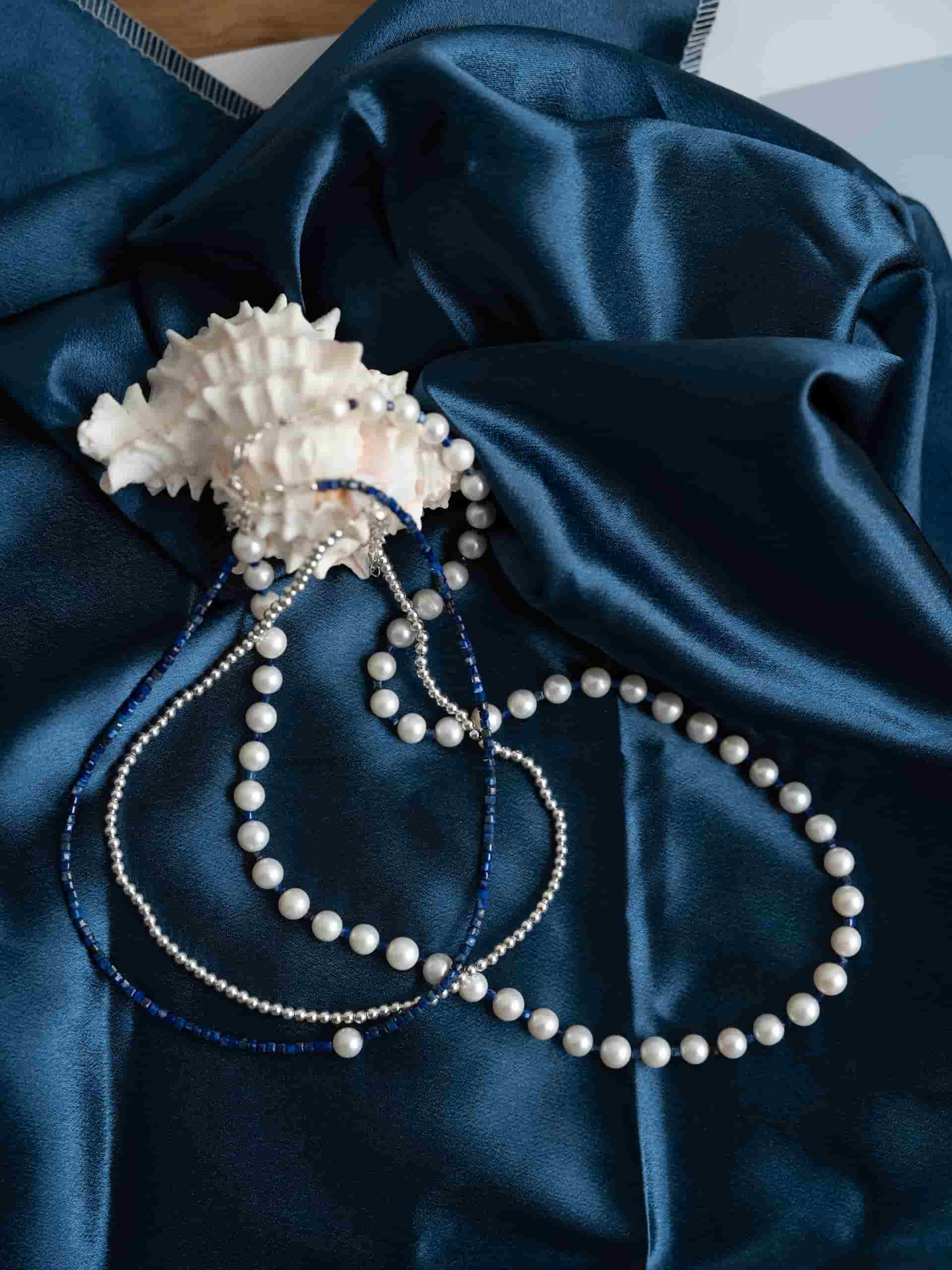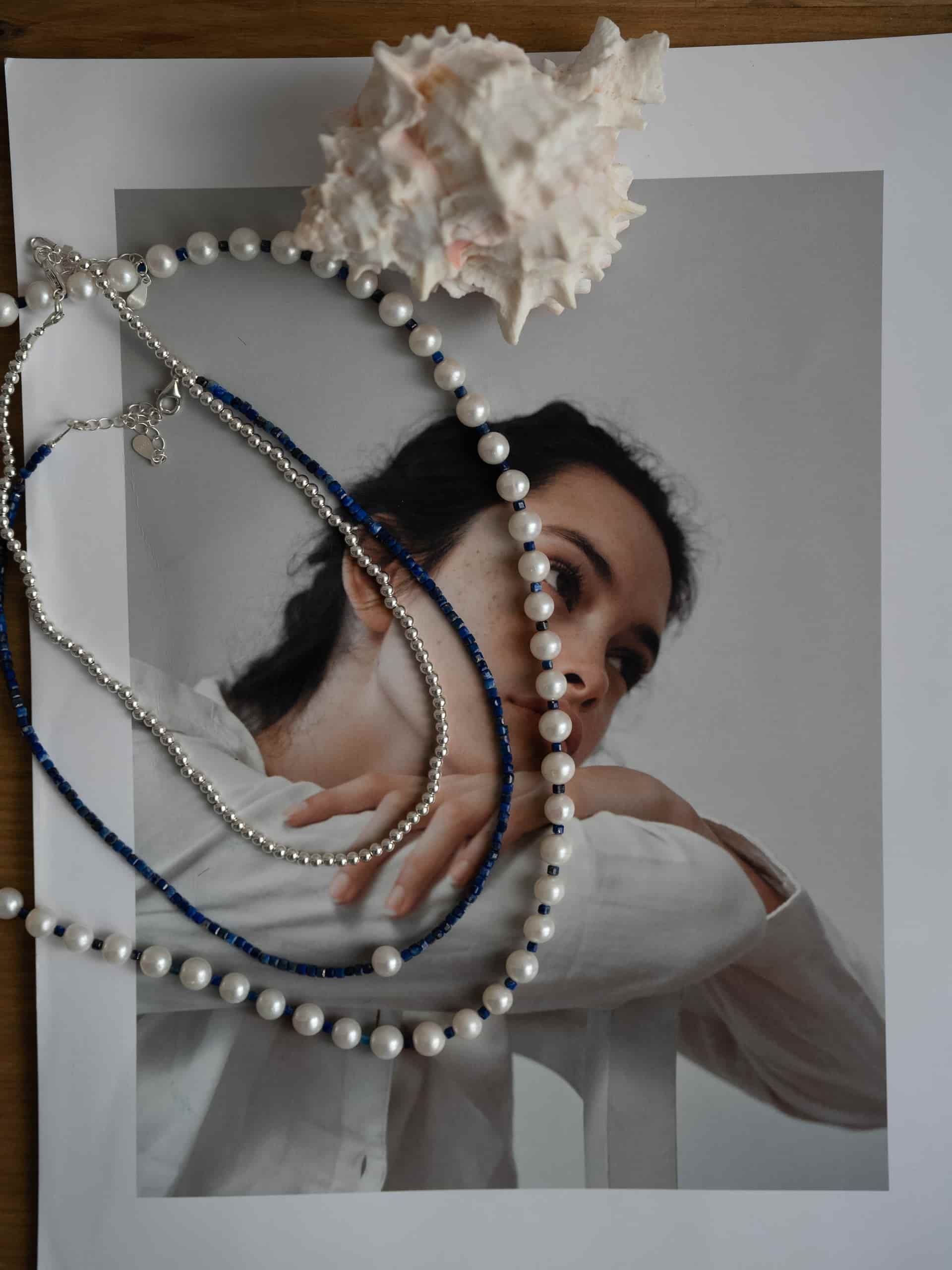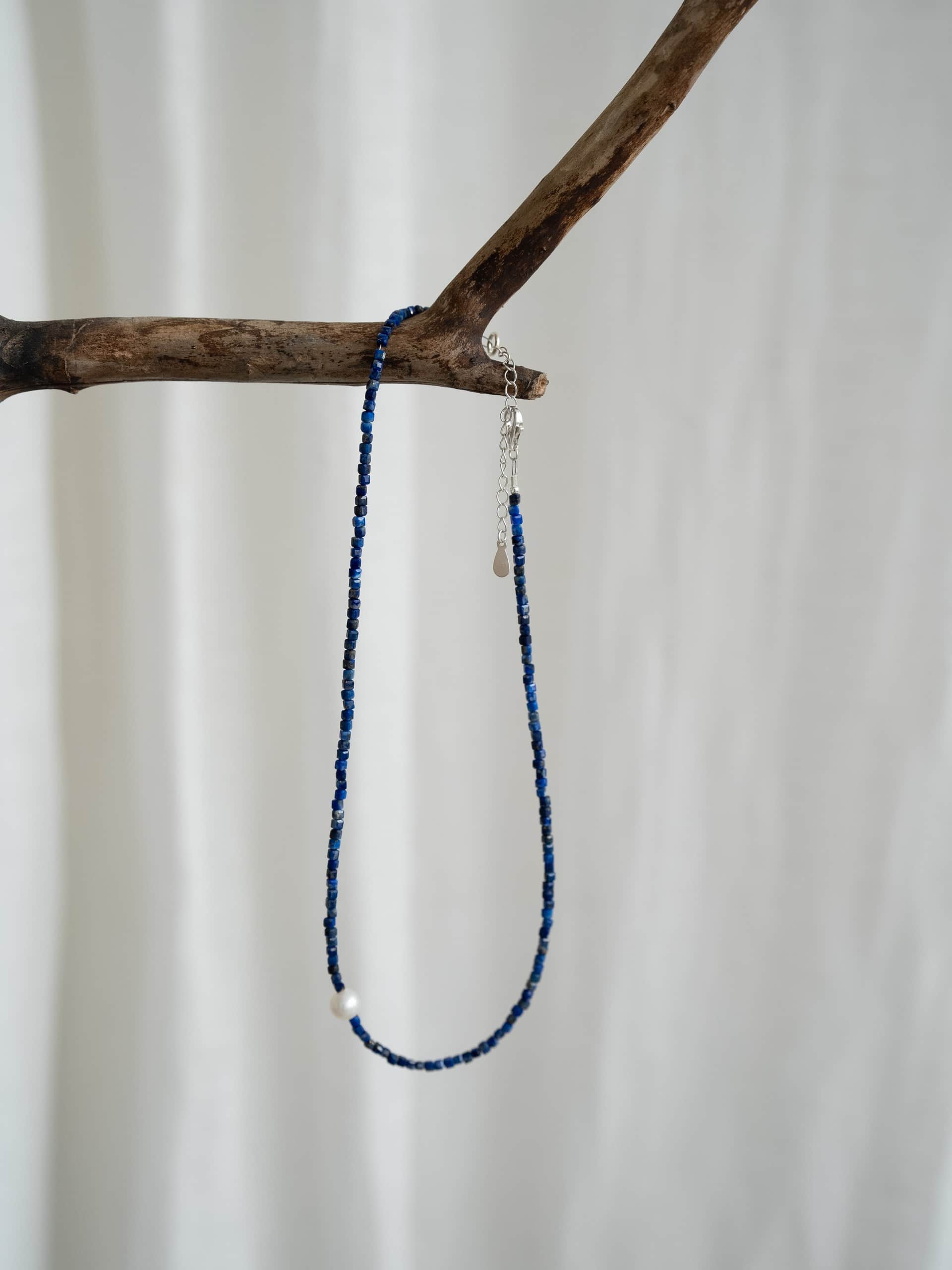 Колье из жемчуга с лазуритом