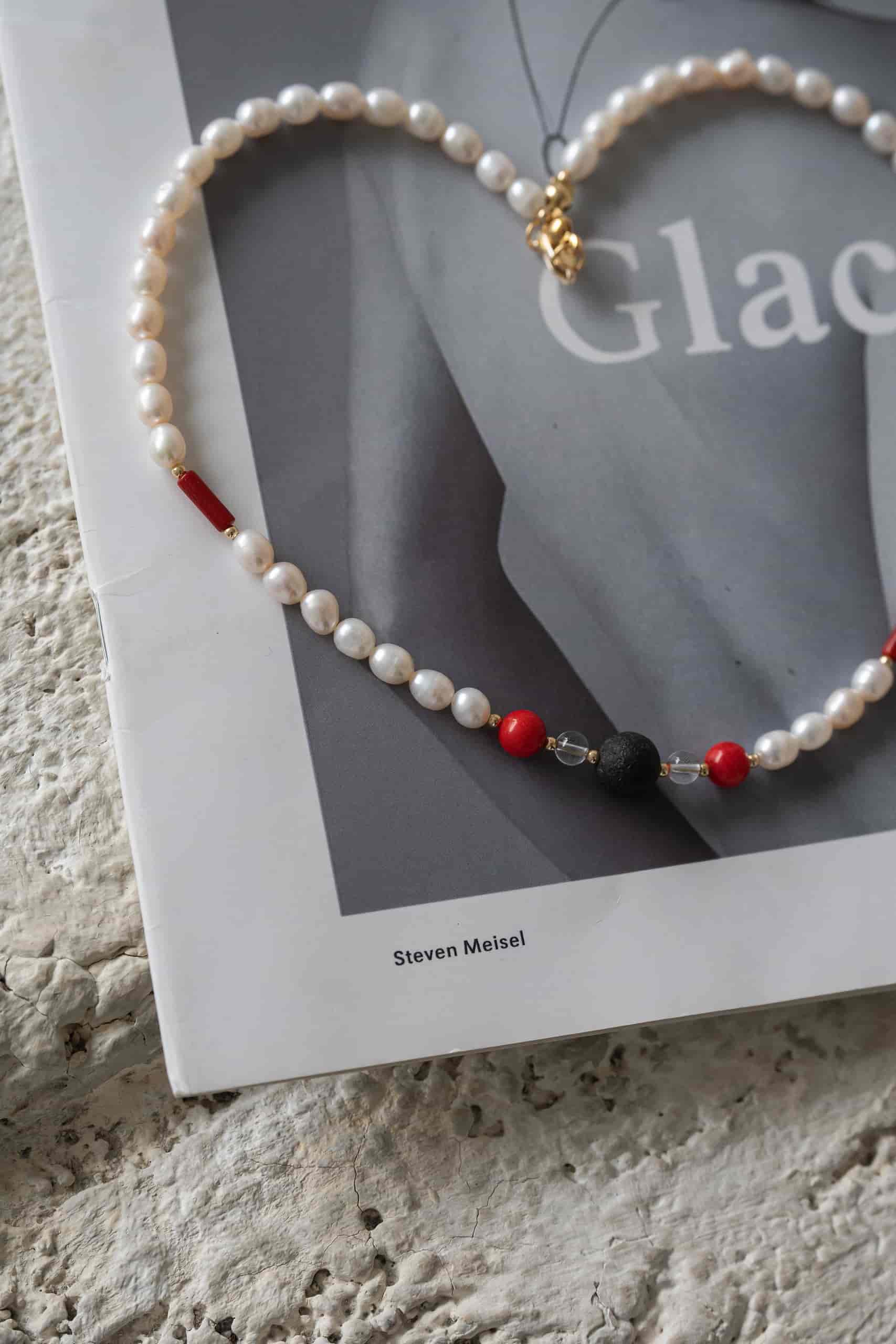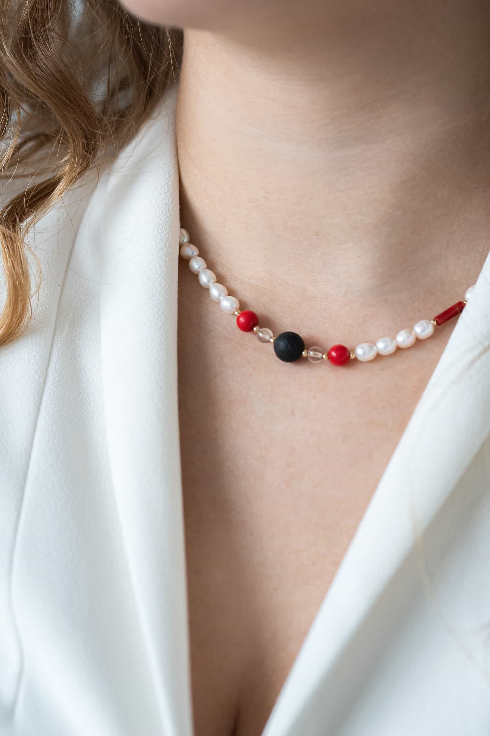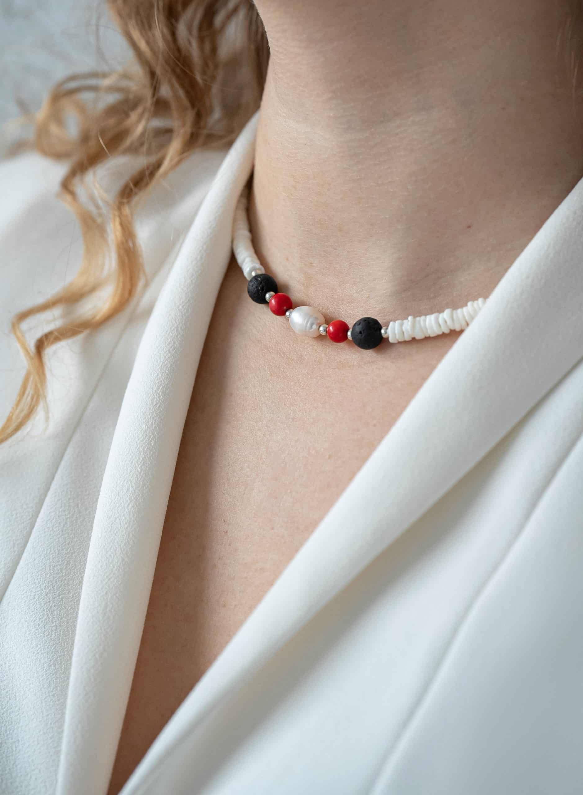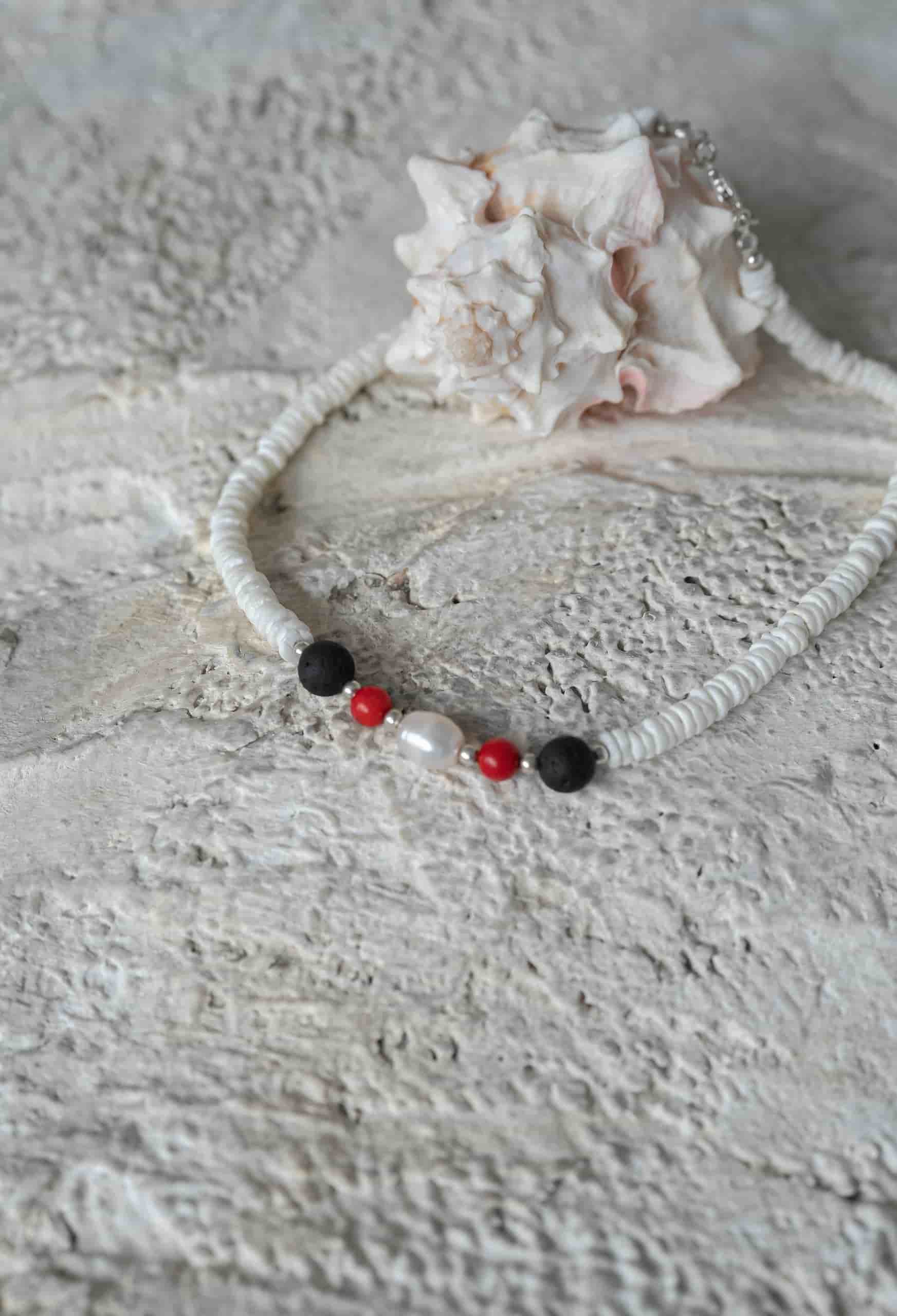 Чокер из ракушечника с жемчугом, лавой и кораллом