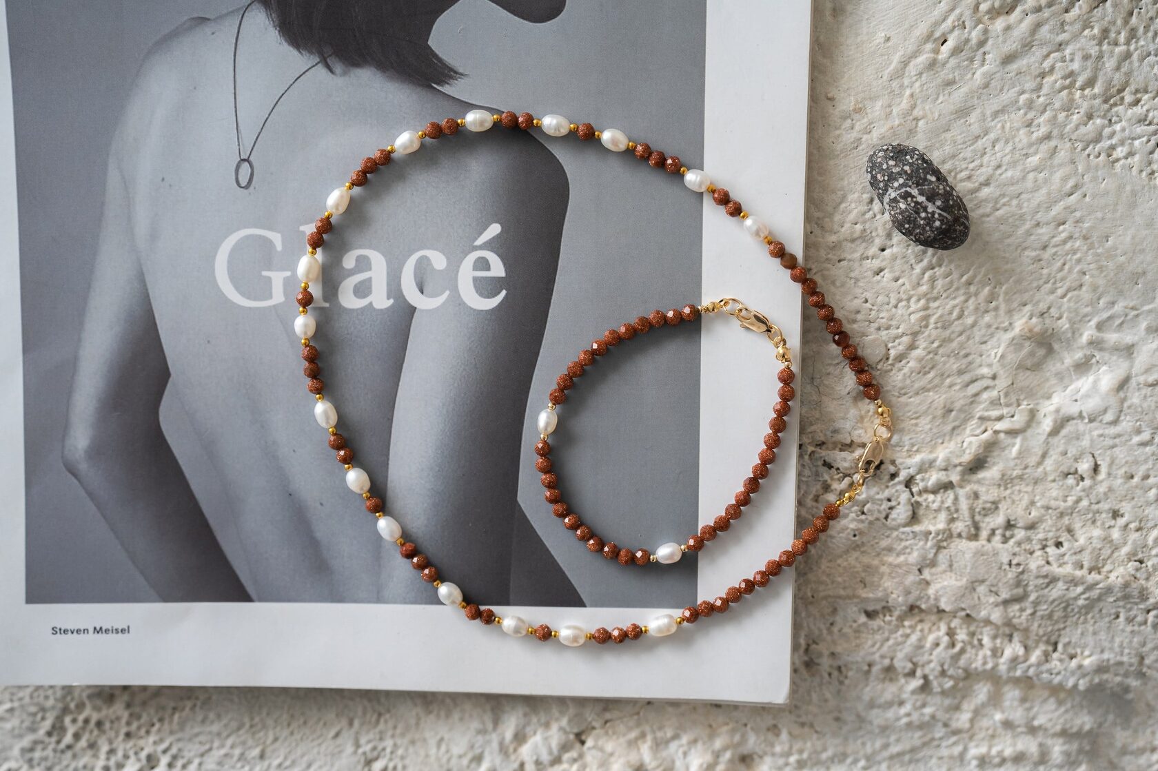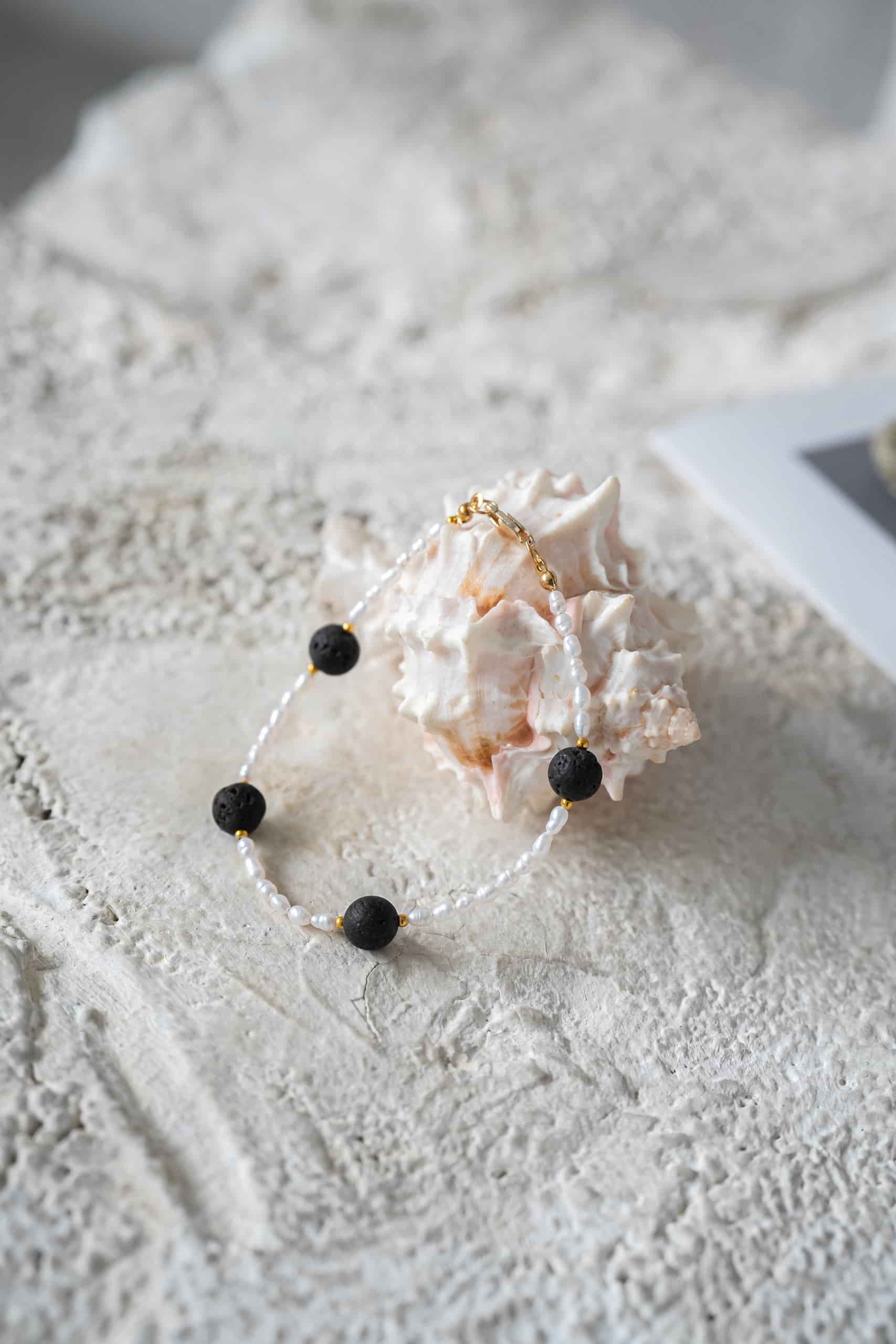 Браслет из жемчуга с лавой