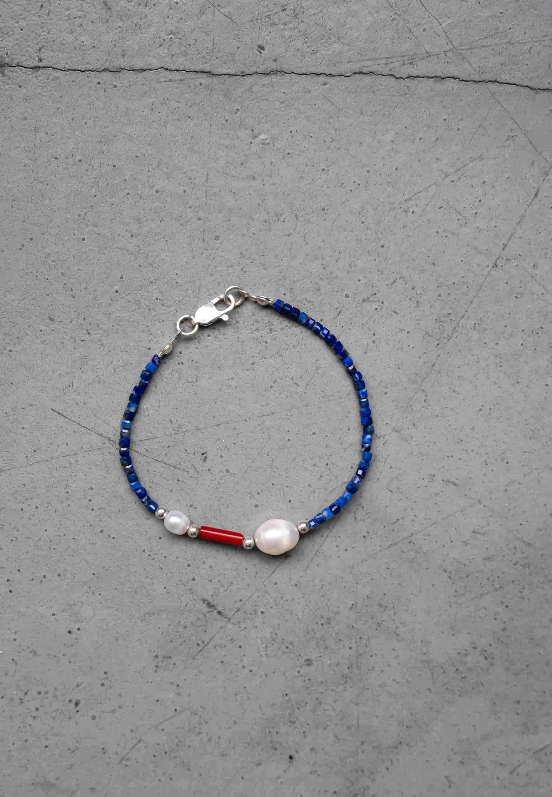 Браслет из лазурита с жемчугом и кораллом