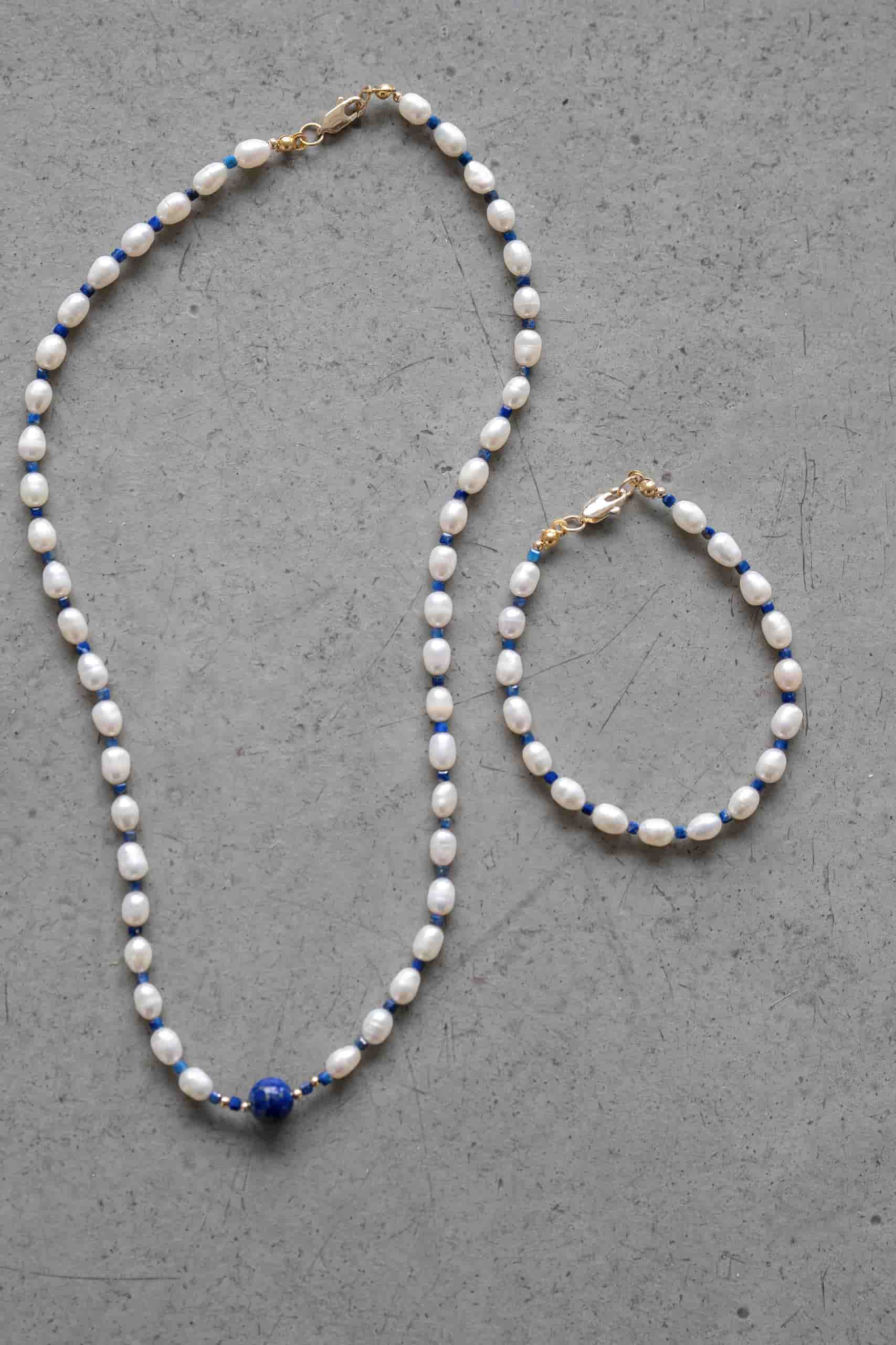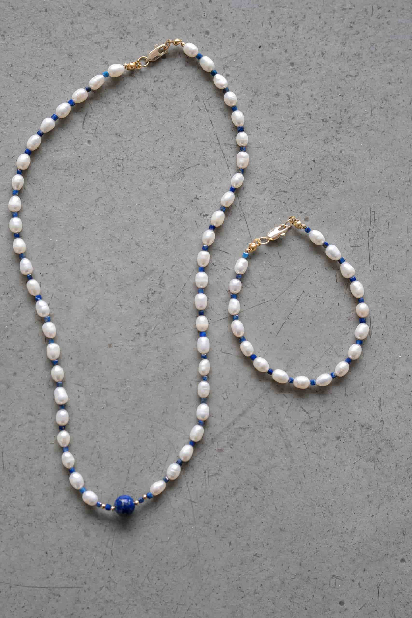 Браслет из жемчуга с лазуритом