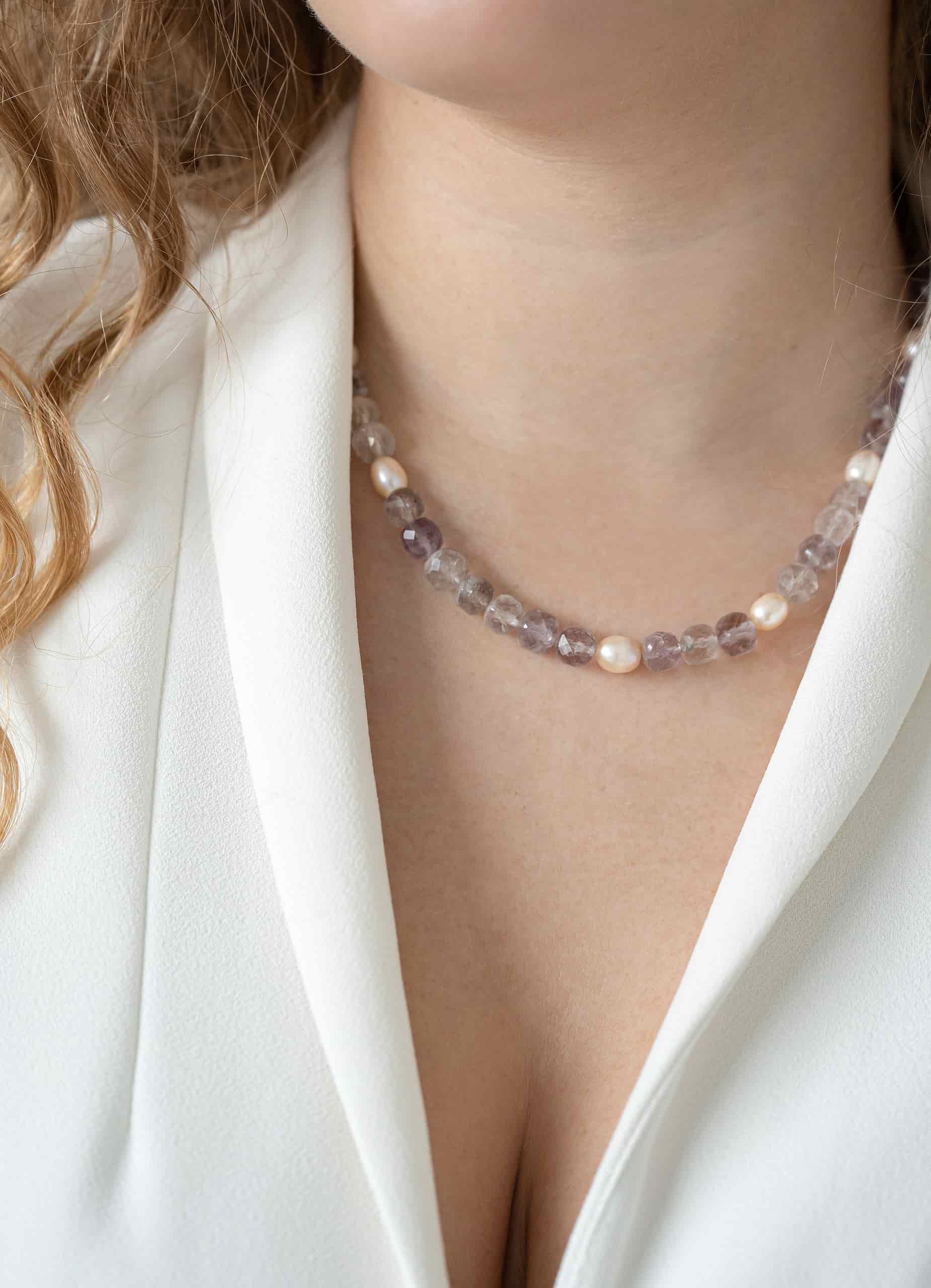 Ожерелье из аметиста с жемчугом