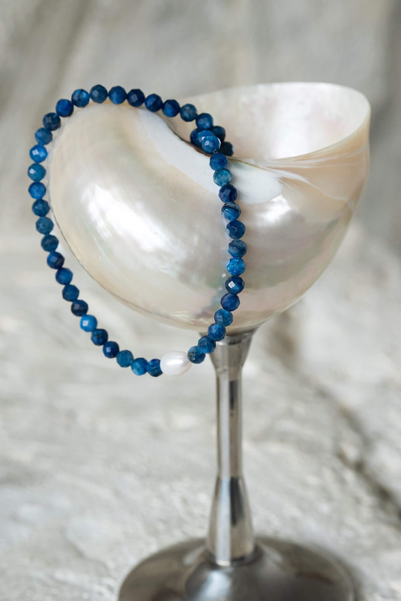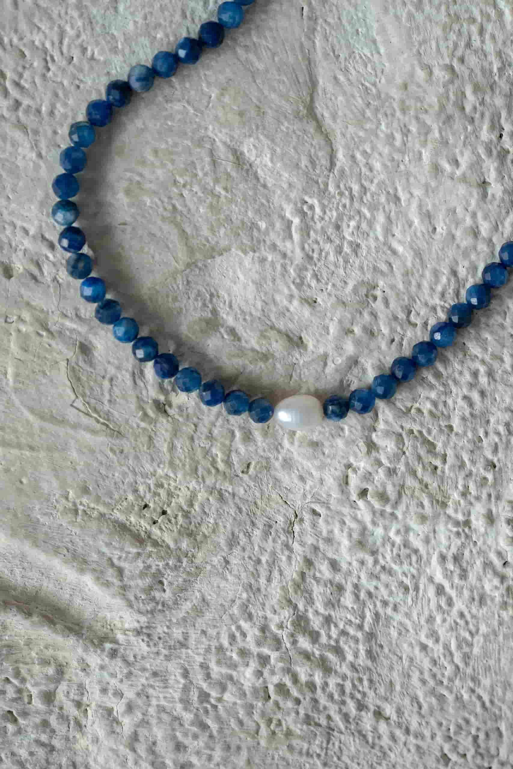 Чокер из кианита с жемчугом