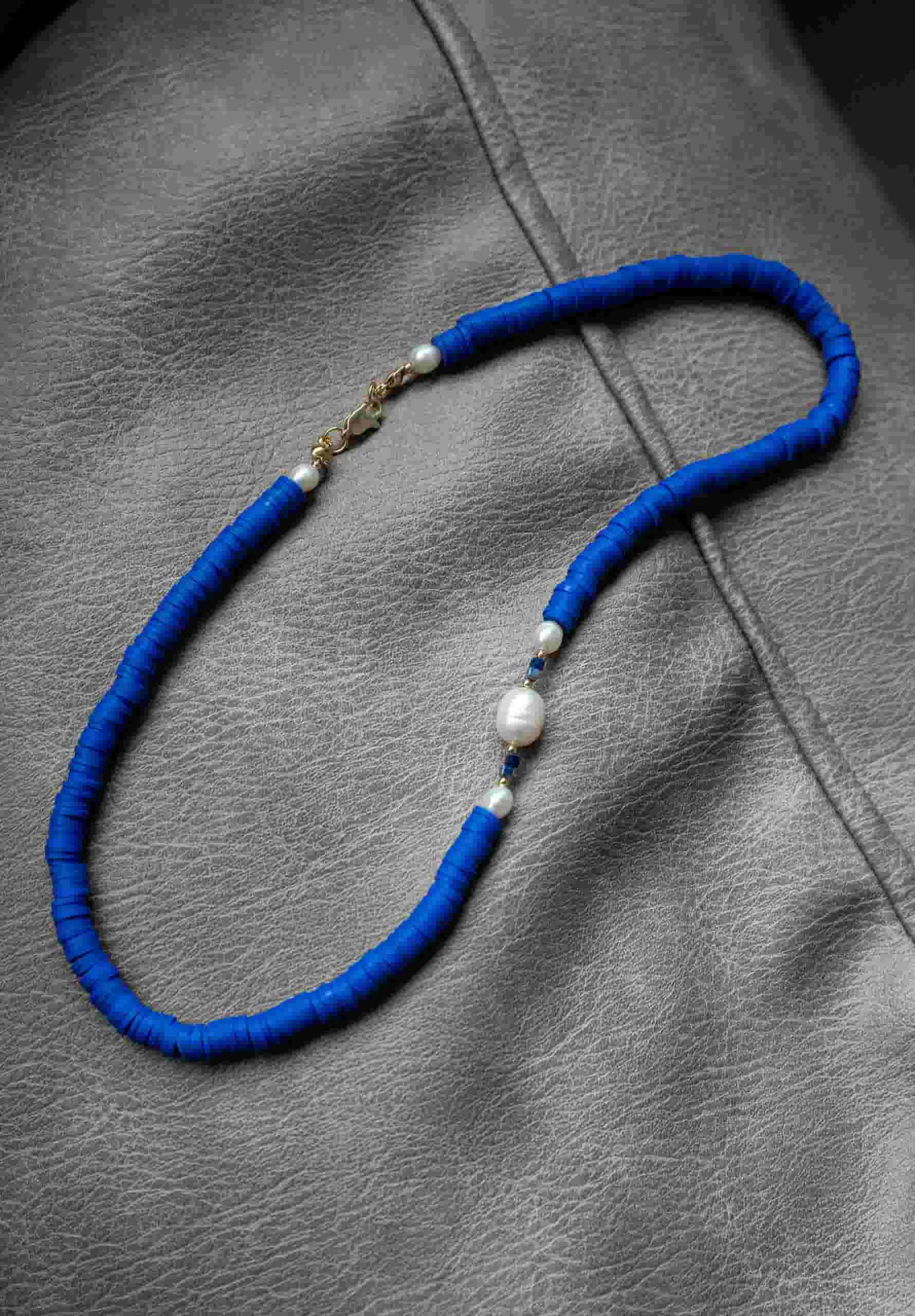 Колье из каучука с жемчугом и лазуритом